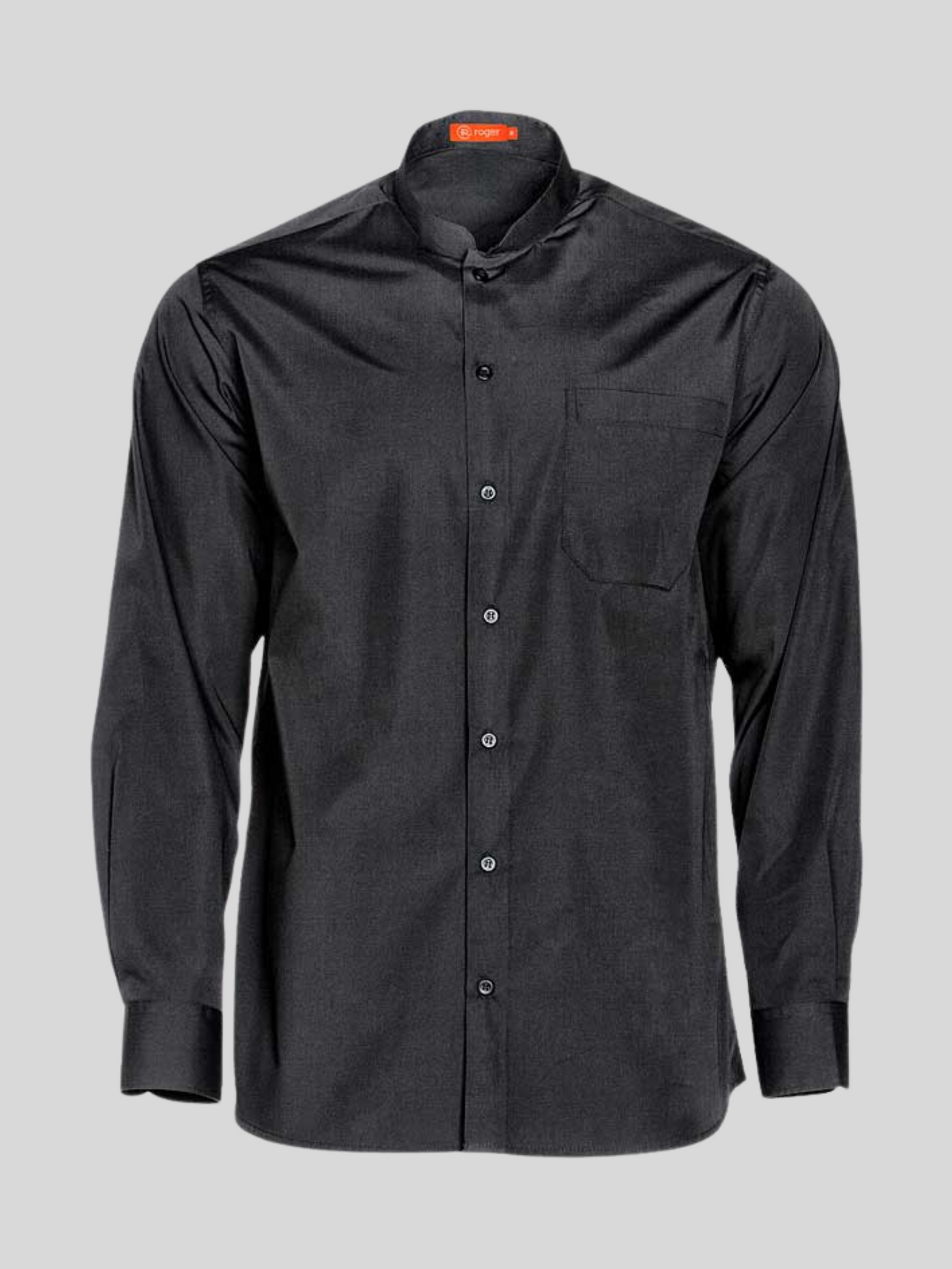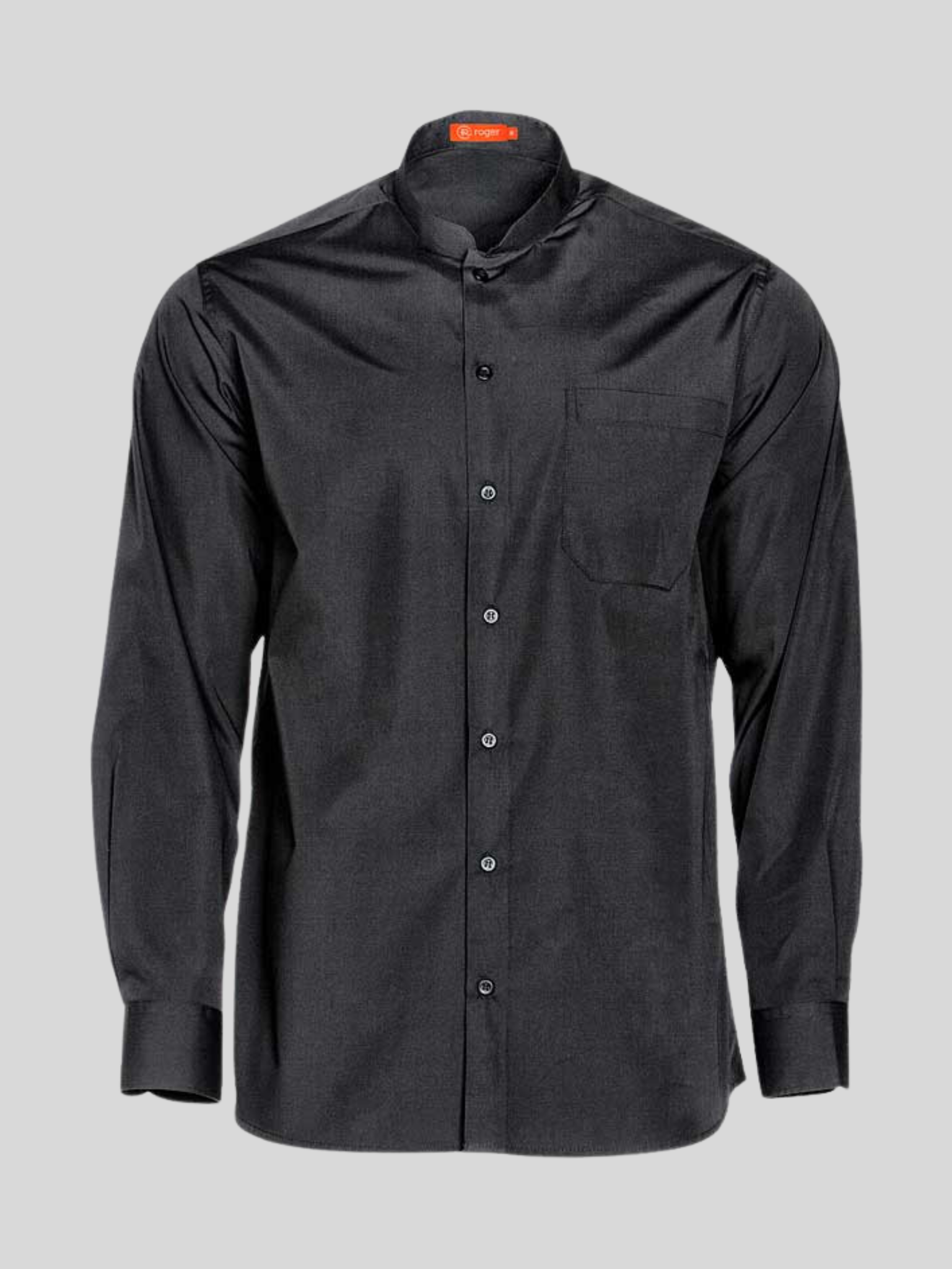 Camisa de manga larga para hombre con corte Regular Fit y cuello Mao, ofrece un estilo clásico y elegante. Con un bolsillo en el frontal izquierdo, combina funcionalidad y sofisticación.
